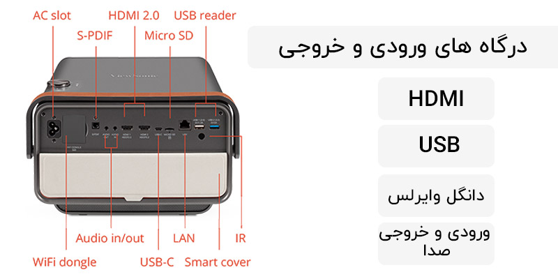 پورت های VIEWSONIC X10-4K + Short Throw Portable Projector