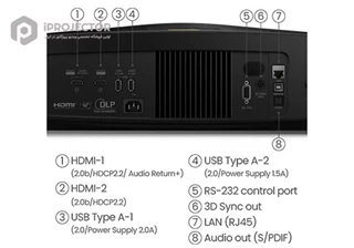 درگاه های اتصال W5800 تقریبا کامل است و تمامی درگاه های اصلی از جملهHDMI و AUDIO را شامل می شود.از طریق اتصال دانگل وایرلس به پورت HDMI به راحتی می توان به صورت وایرلس محتوای دلخواهتان را از تلفن هوشمند تبلت و یا لپ تاپ پخش کنید.درگاه دیگری که 5800W از آن بهره می برد USB نوع A و B است. البته شاید اگر مطلع شوید که از درگاه USB نمی توانید برای نمایش فیلم و فایل های آفیس استفاده کنید ممکن است مقداری نا امید شوید. از این درگاه می توانید برای نمایش عکس و تامین برق دستگاه هایی مانند دانگل وایرلس استفاده کنید.