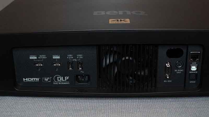 ورودی ها و اتصالات در سمت چپ عقب دستگاه قرار دارند. W5800 دارای دو ورودی HDMI 2.1 است و HDMI #1 از عملکرد بهبود یافته بازگشت صدا (eARC) پشتیبانی می کند. همچنین دو پورت USB 2.0 وجود دارد. در حالی که W5800 یک ویدئو پروژکتور هوشمند نیست، دارای یک پخش کننده رسانه USB است که از طیف گسترده ای از فرمت های عکس و ویدئو پشتیبانی می کند. سایر اتصالات موجود عبارتند از یک پورت LAN، یک پورت نوری-دیجیتال RS323 و یک پورت سیگنال 3D Sync.