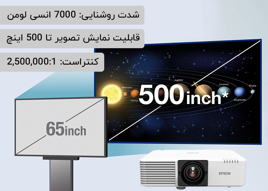 روشنایی بالا، شدت روشنایی 7000 انسی لومن با روشنایی بالا تا 500 اینچ تصویر را نمایش می دهد.
