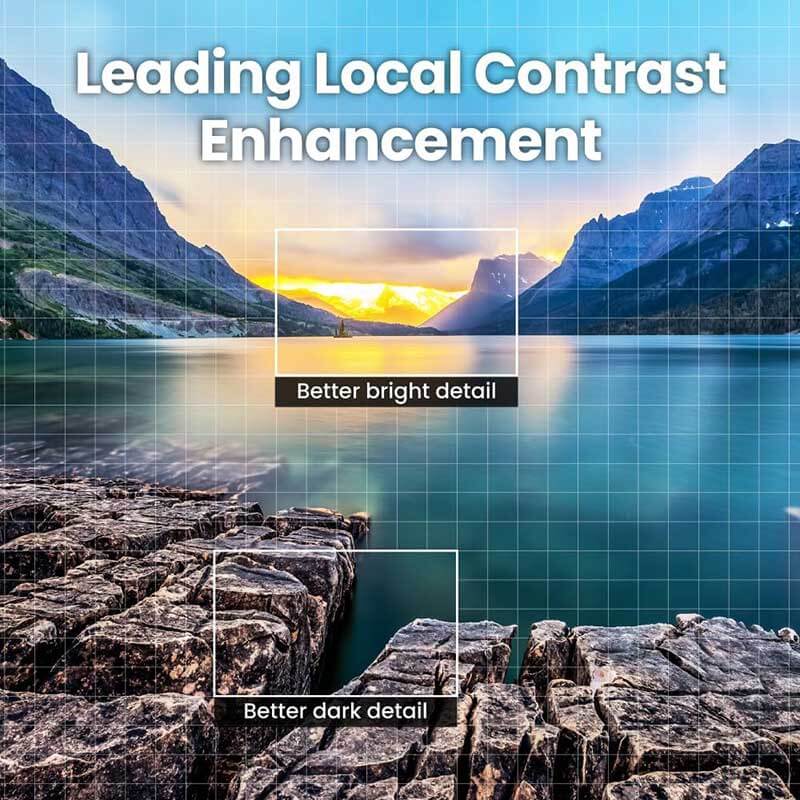با تقسیم تصاویر به بیش از ۱۰۰۰ ناحیه، تقویتکننده کنتراست محلی روشنایی هر بخش را تحلیل کرده و برای نمایش بهتر جزئیات در نواحی تاریک و روشن، گاما را بهطور مستقل تنظیم میکند.